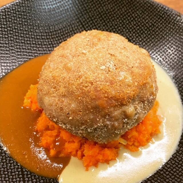 Hertenkalffilet peertje in porto en aardappelwafeltje