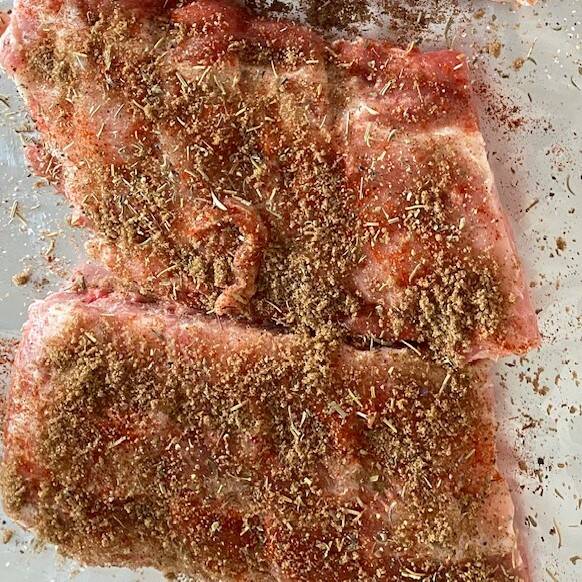 6 stukken natuur varkensribben(elk stuk had ongeveer 5 beentjes)